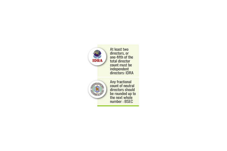 "At least one-fifth of the total number of directors on a company's board shall be independent directors; any fraction shall be considered to the next integer or whole number for calculating number of independent director(s)," reads the BSEC corporate governance code.
