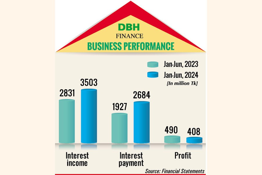 DBH Finance's half-yearly profit fell almost 17 per cent year-on-year to Tk 408 million in January-June this year, owing to increased interest payment on deposits coupled with higher provision against stock investments.