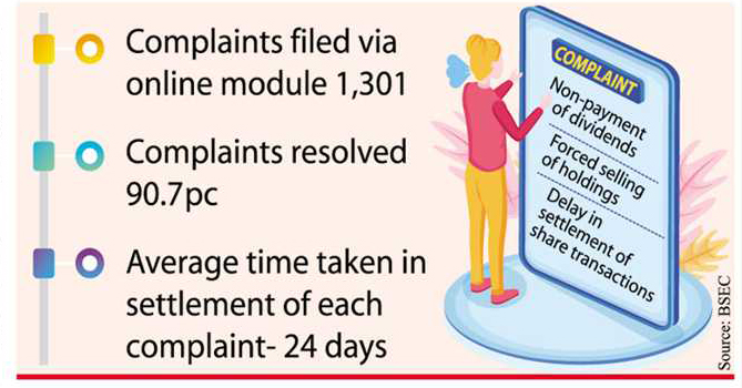 On an average, it took 24 days to address each complaint while complainants had to wait for a few months to get a remedy before the introduction of the module, according to BSEC officials.