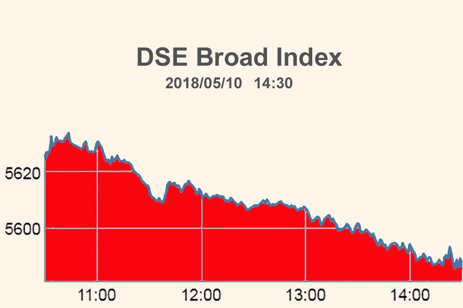 DSEX, the prime index of the Dhaka Stock Exchange (DSE), went down by 40.11 points or 0.71 per cent to settle at 5,587 points.