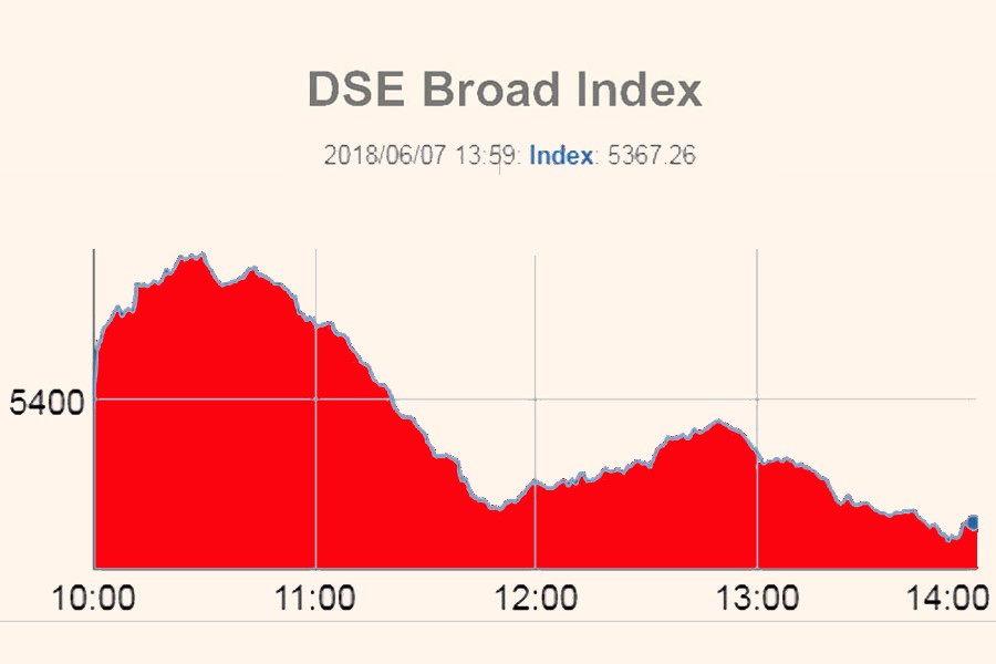 DSEX, the benchmark index of the Dhaka Stock Exchange (DSE), fell more than 32 points or 0.59 per cent to settle the week at 5,366 points.