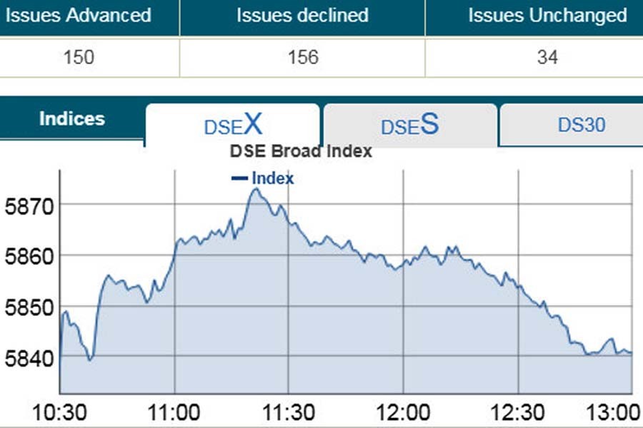 DSEX, the prime index of the DSE, went up by 4.72 points or 0.08 per cent to stand 5,840 points at 11:00 am.
