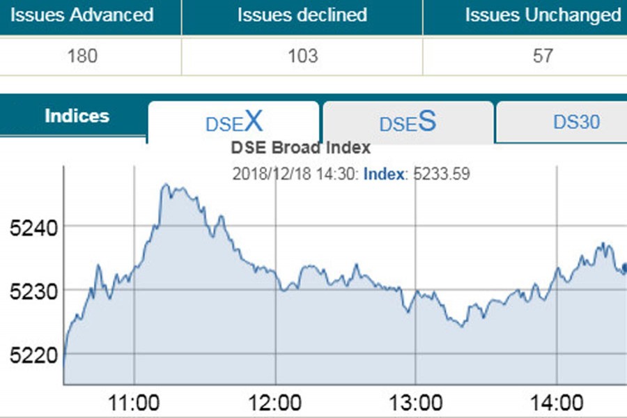 Finally, DSEX, the prime index of the DSE, settled at 5,233 points, after advancing 15.58 points or 0.29 per cent after losing 143 points in the past seven days.
