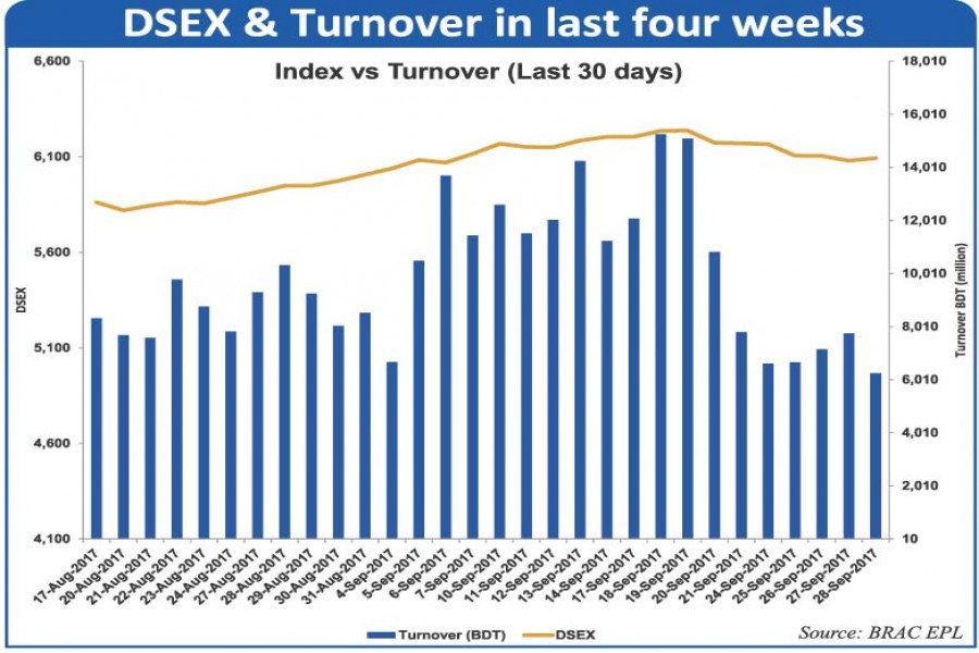 In fact, the premier bourse started to observe the turnover below Tk 10 billion from September 21 and continued till Thursday last.