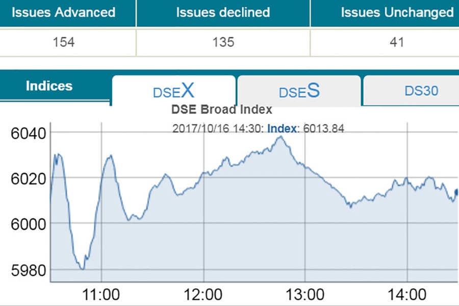 After witnessing volatility almost throughout the session, DSEX, the prime index of the DSE, which replaced the DGEN in four-and-a-half-year back, finished at 6,014, advancing 4.89 points or 0.08 per cent over the previous session.