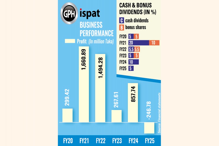 GPH Ispat reported a loss of Tk 246.78 million in FY25, the first since its listing, as demand for its products declined and production and finance costs increased.