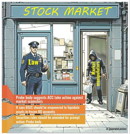 Under the existing system, regulators can freeze the bank and BO (beneficiary owner's) accounts of those found responsible for misconduct. But there is no scope to liquidate assets in the portfolios of market manipulators.