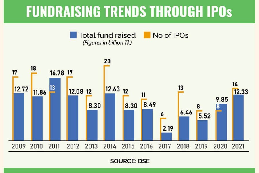 The largest-ever IPO listing with the country's capital market -- Robi Axiata - also raised over Tk 5.23 billion in 2020.