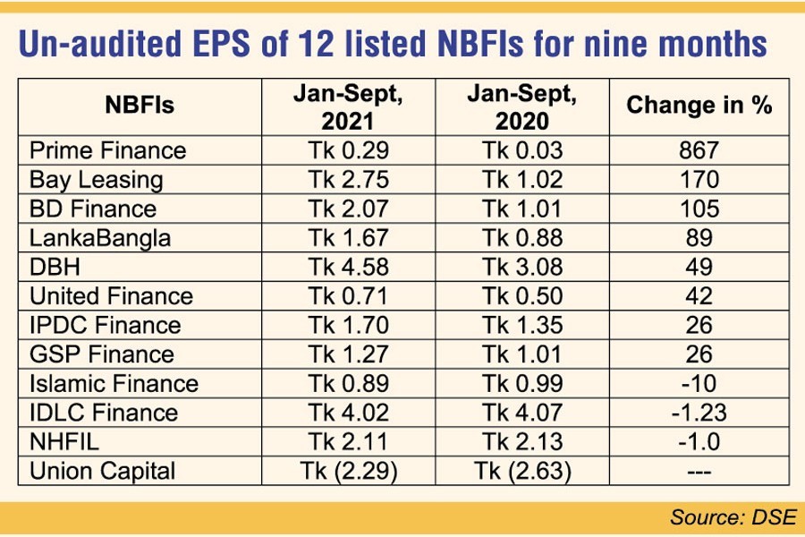 The country's leading listed non-banking financial institutions (NBFIs) have reported higher profit in the nine months for January-September 2021 compared to the same period of last year.