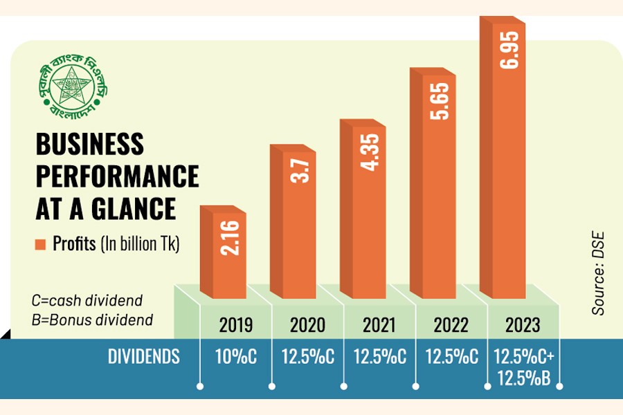 Based on the impressive profit, the bank's board declared a 25 per cent dividend (12.5 per cent cash and 12.5 per cent stock dividend) for 2023, the highest dividend after 2010 when the bank paid a 35 per cent stock dividend.