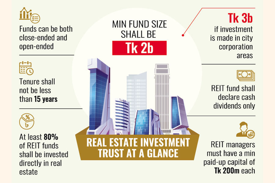 The rules were formulated, keeping in mind that funds will go in rental projects but now the Bangladesh Securities and Exchange Commission (BSEC) thinks REIT funds should have scope to facilitate development in small metropolis surrounding the city corporations.