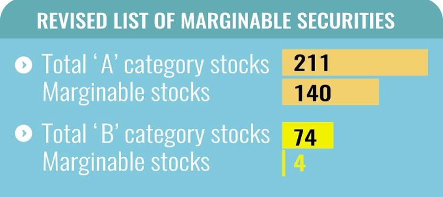 As per the DSE's latest list, there are 140 marginable stocks under 'A' category and six under 'B' category.