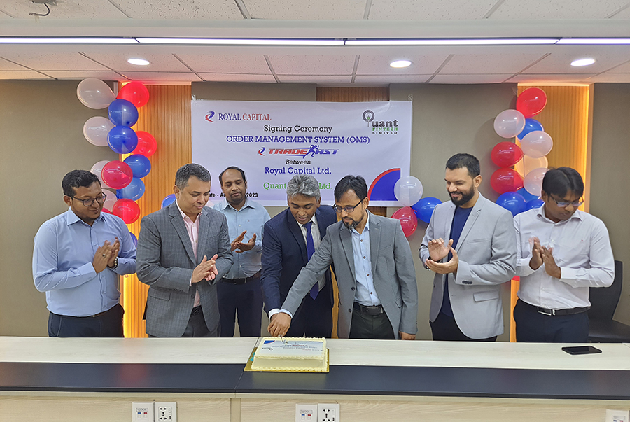Mamun Rashid, COO, Anwarul Islam, Head of Trade, high officials from the Business Development and IT departments of Royal Capital, and Md Jabed Hossen, director and CEO of Quant, among others, were present at the signing ceremony.