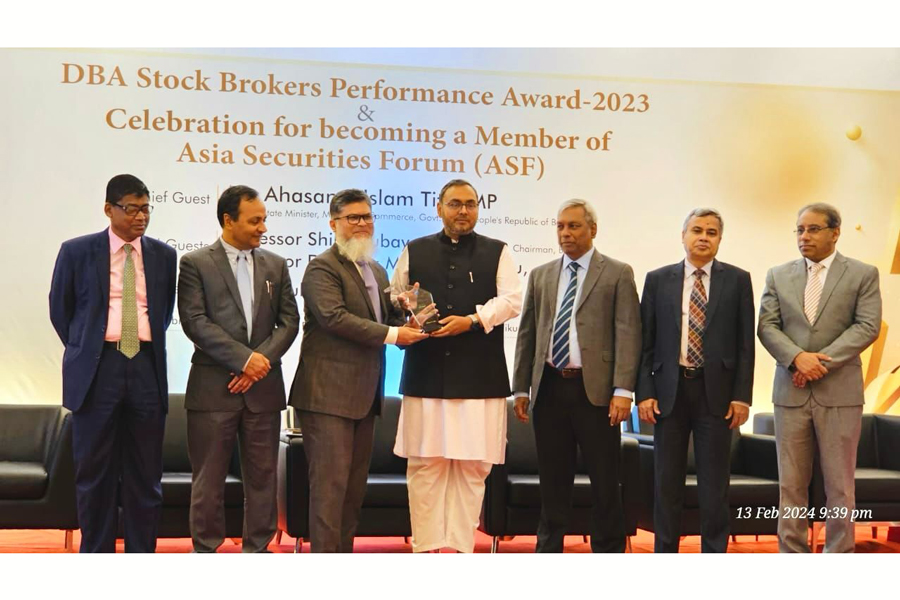 Md Mesbah Uddin Khan, CEO of Sheltech Brokerage, received the crest of 'DBA Stock Brokers Performance Award-2023' from the Minister of Commerce, Ahsanul Islam Tito, at an award ceremony organised jointly by the Dhaka Stock Exchange (DSE) and the DSE Brokers Association of Bangladesh (DBA), representing Trading Rights Entitlement Certificates (Trec) holders of the DSE, according to a press release.