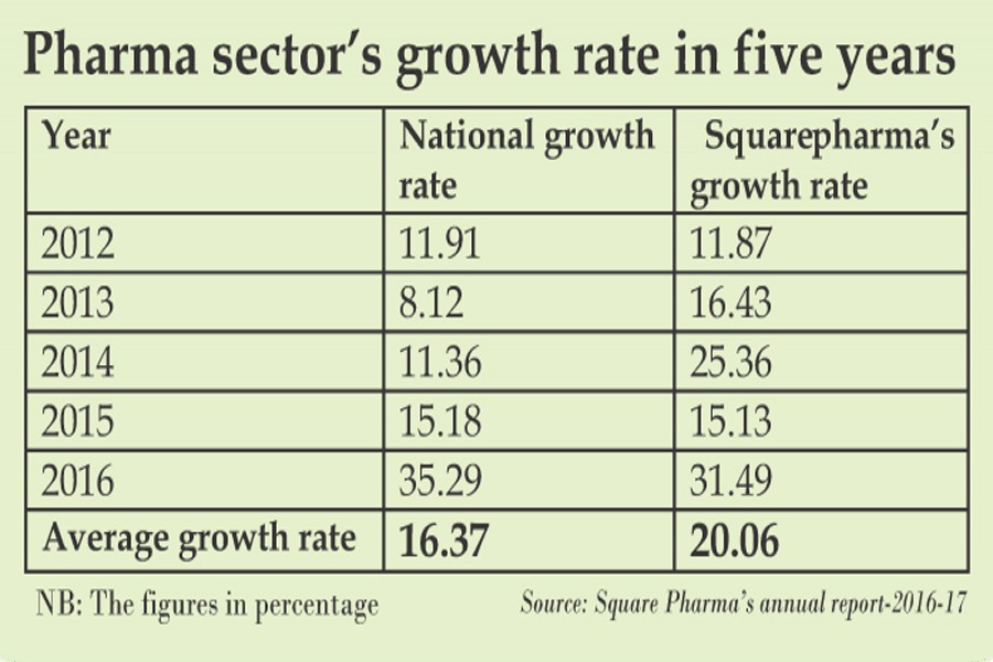 Square Pharmaceuticals has attained an average growth rate of 20 per cent in the past five years, beating the national average growth rate, riding on the expanded domestic market as well as new export frontiers.