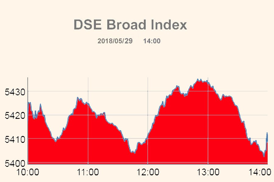 After witnessing see-saw movement, DSEX, the benchmark index of the Dhaka Stock Exchange (DSE), settled at 5,409, after shedding 7.72 points or 0.14 per cent over the previous day.