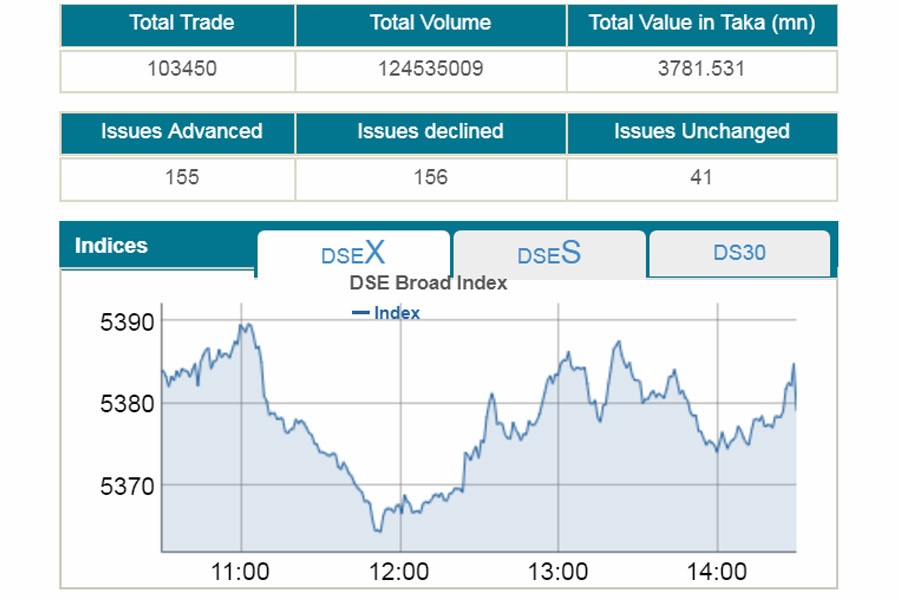 DSEX, the prime index of the Dhaka Stock Exchange (DSE), settle at 5,386, advancing 2.97 points or 0.05 per cent over the previous session.