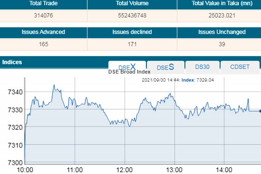 DSEX, the benchmark index of the Dhaka Stock Exchange (DSE), went up by 26.17 points or 0.35 per cent to settle at 7,329–the highest since its inception on January 27, 2013, replacing the then key index -- DGEN.