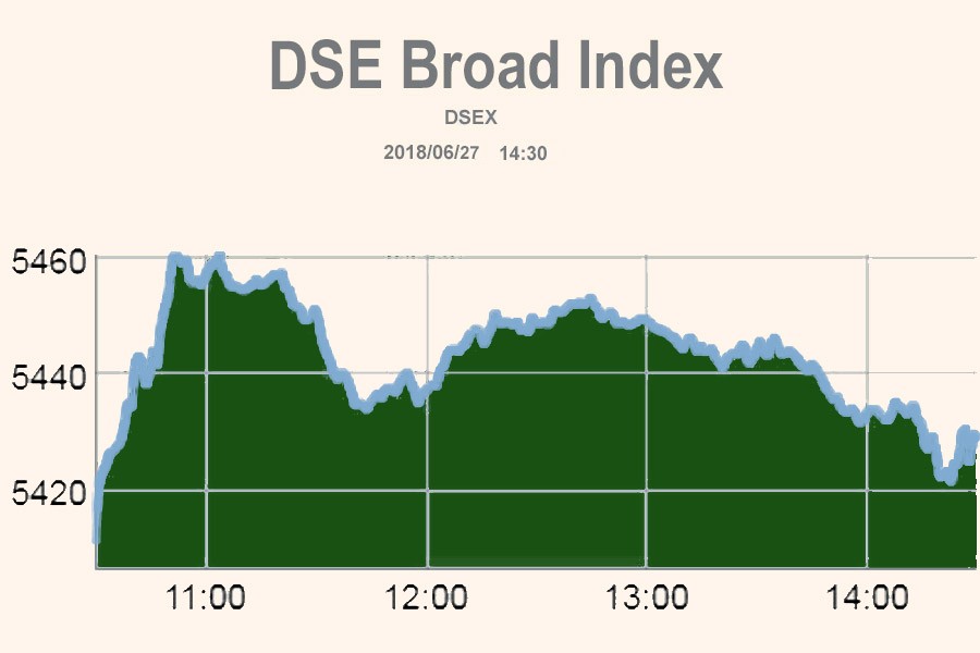 DSEX, the prime index of the Dhaka Stock Exchange (DSE), went up by 17.76 points or 0.32 per cent to finish at 5,429 after losing 111 points in the past two sessions.