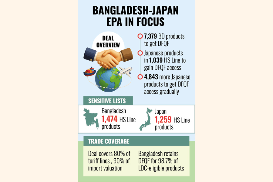 The deal, coming under the umbrella of Economic Partnership Agreement (EPA), on the other hand, will enable Japanese products under 1,039 Harmonised System (HS) Line to enjoy the DFQF facility at the same time.