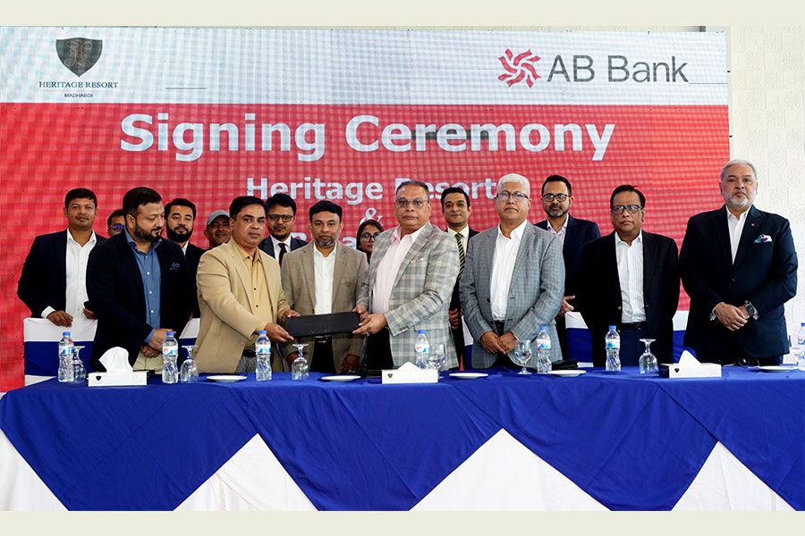 The program was arranged at Heritage Resort, Nopara, Madhabdi, Narsingdi. Mr. Shafiqul Alam, Independent Director, AB Bank and Mr. Md. Fazlur Rahman, Director, AB Bank were present while Mr. Tarique Afzal, Managing Director & CEO of the Bank and Mr. Menhazur Rahman Bhuiyan, Managing Director of the resort were signing the agreement on behalf of their respective organizations, according to a media release.