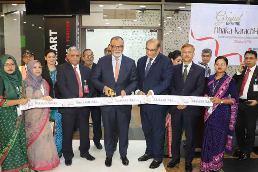 Advisor Sheikh Bashir Uddin and Pakistan’s High Commissioner to Dhaka Imran Haider jointly cut the ribbon to mark the launch at a ceremony at the airport.