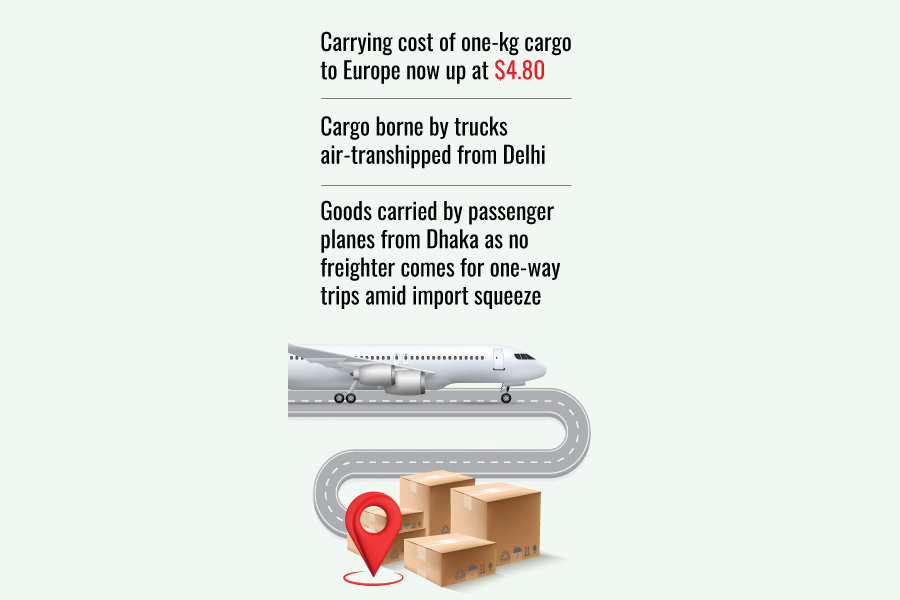 "Cargoes from Dhaka are being carried by passenger planes. No freighter planes come here, thus a capacity shortage always remains," says Mr Khan.