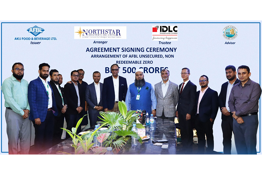 At a recently held ceremony at the AFBL head office, the agreement was formally signed by Sk Shamim Uddin, managing director of Akij Food and Beverage Limited (issuer); Md Minhaz Zia, CFA, chairman of North Star Investments (arranger); Zhuang Lifeng, chairman of Lion City Advisory Limited (advisor); and Mesbah Uddin Ahmed, managing director of IDLC Investments Ltd (trustee).