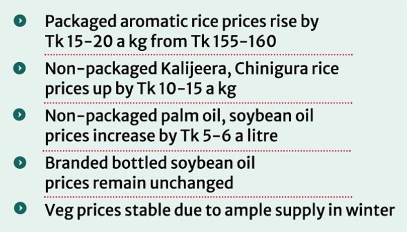 Juel Rana, a grocer at West Dhanmondi in the capital, told The Financial Express the major suppliers had increased prices in anticipation of higher demand during Shab-e-Barat (February 3-4), Ramadan, and Eid, despite the fact that the harvesting of aromatic rice in the northern and north-western regions ended this month.