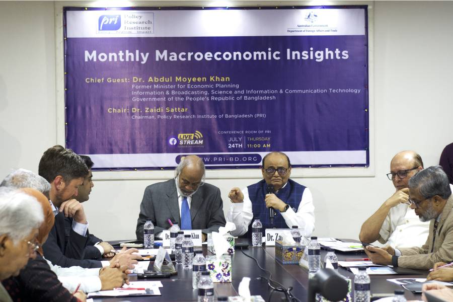 The Centre for Macroeconomic Analysis (CMEA) of the Policy Research Institute of Bangladesh (PRI), in partnership with the Department of Foreign Affairs and Trade (DFAT) of the Australian Government, arranged the event titled “the July edition of its Monthly Macroeconomic Insights (MMI)’ at PRI’s conference room.
