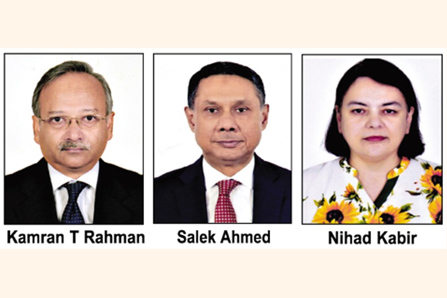 Mr Kamran T Rahman, Mr Salek Ahmed Abul Masrur and Ms Nihad Kabir were elected as chairman, senior vice-chairman, vice-chairman respectively for 2023-24 and 2024-25.