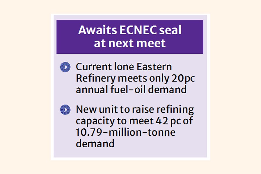 The new refinery, with an annual crude oil-processing capacity of 3.0 million tonnes, is in the agenda for the ECNEC meeting to be held next Tuesday, sources at the Ministry of Planning have confirmed.