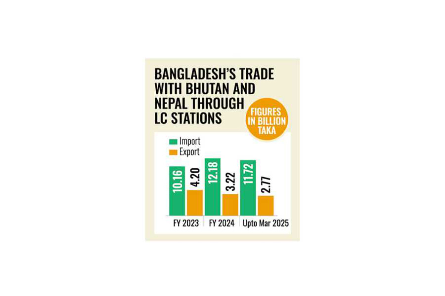 Besides, from July to March of FY25, Bangladesh exported 26,999 metric tonnes of goods worth Tk 2.77 billion to Bhutan and Nepal.