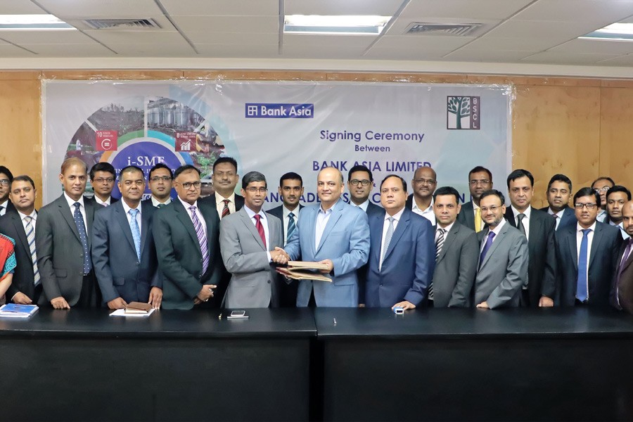 Md. Arfan Ali, President & Managing Director of Bank Asia and Hasan Imam, PhD, Chairman of Bangladesh SME Corporation Ltd have signed an agreement at the bank’s head office, Dhaka recently to accelerate MSME dairy-based loan facilities to rural areas through BSCL Agent Banking channel.