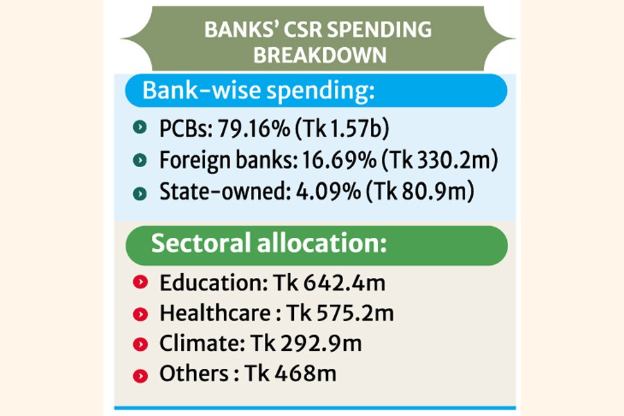 Banks allocated Tk 642.4 million to the sector, accounting for 32.47 per cent of the total CSR outlay.