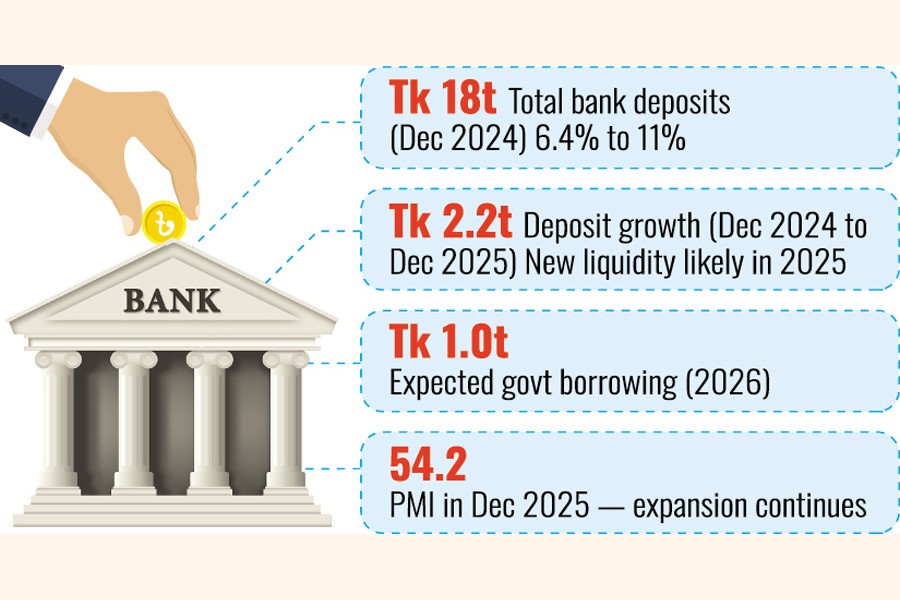The BB governor noted that deposit growth is likely to reach around 11 per cent by the end of December last year, translating into an estimated Tk 2.20 trillion of additional liquidity entering the market.