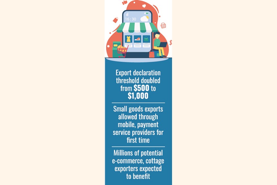 The Bangladesh Bank (BB) raised the declaration-free export ceiling to US$1,000 or equivalent, up from the previous $500, to promote cross-border e-commerce and low-value export transactions.