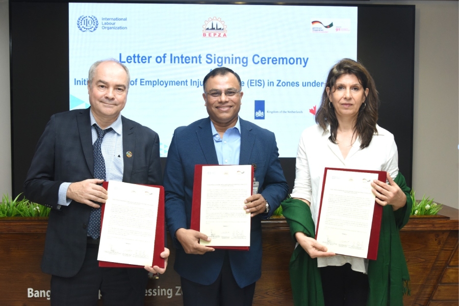 Praising the initiative of introducing the EIS project for EPZ workers at the signing ceremony of the Letter of Intent, BEPZA's Executive Chairman, Abul Kalam Mohammad Ziaur Rahman, stated, “This project will strengthen the social protection of workers in EPZs, contributing to sustainable industrial growth in Bangladesh.”