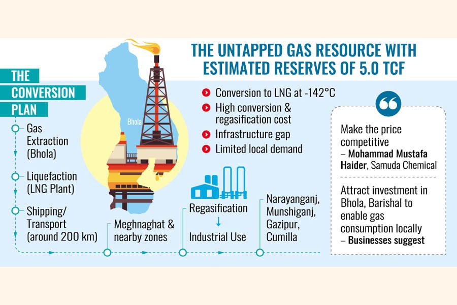 Industries in Narayanganj, Munshiganj, Gazipur and parts of Cumilla have long been suffering from an acute gas shortage. Yet, despite Bhola's promising reserve of over 5.0 trillion cubic feet (tcf) of natural gas, the absence of buyers has kept the initiative in limbo.