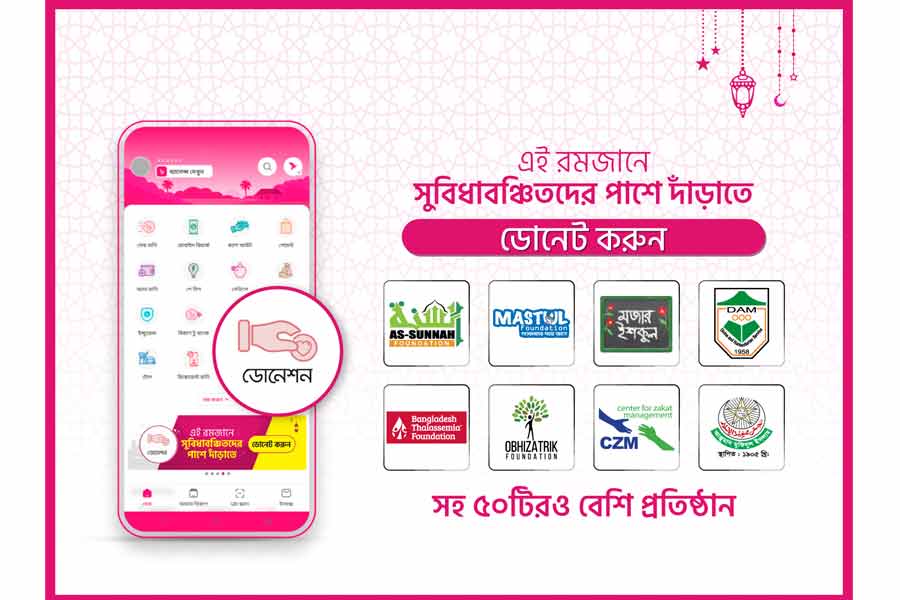 Throughout the year, bKash enables users to donate directly to various trusted institutions, including As-Sunnah Foundation, Mastul Foundation, Bangladesh Thalassemia Foundation, Anjuman Mufidul Islam, Mojar School, Obhizatrik Foundation, JAAGO Foundation, Dhaka Ahsania Mission, Center for Zakat Management, Bangladesh Red Crescent Society, Quantum Foundation, icddr,b, UNICEF, World Food Programme (WFP), National Liver Foundation of Bangladesh, DoNation Foundation Trust, Prothom Alo Trust and etc, according to a media release.