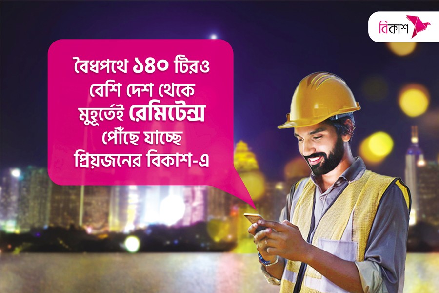 Remittance through bKash can be sent and accessed anytime anywhere.