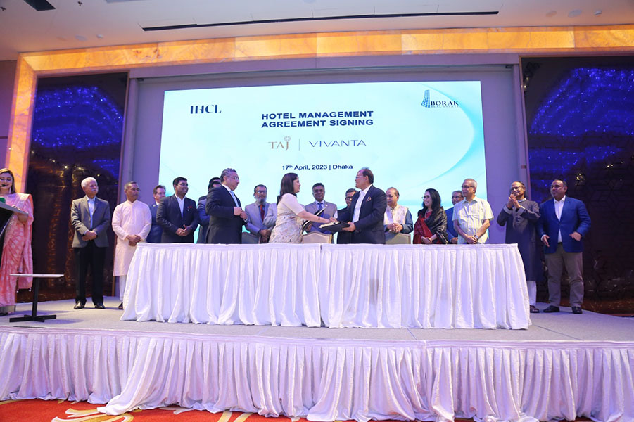 On April 17, the Hotel Management Agreement was signed by representatives from The Indian Hotels Company Ltd (IHCL) and Borak Real Estate Ltd (BREL) at Sheraton Dhaka.