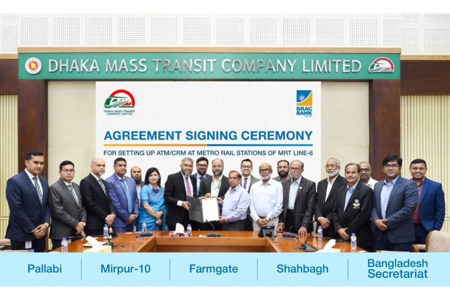 This initiative follows a strategic agreement between BRAC Bank and Dhaka Mass Transit Company Limited (DMTCL), the operator of MRTs, to establish ATM and CRM facilities across MRT Line-6.
