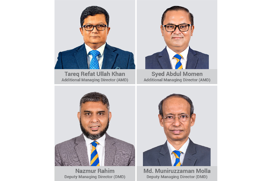Mr. Tareq Refat Ullah Khan, DMD & Head of Corporate & Institutional Banking, and Mr Syed Abdul Momen, DMD & Head of SME Banking, have been promoted to Additional Managing Director. Mr Nazmur Rahim, Head of Alternate Banking Channels, and Mr Md Muniruzzaman Molla, Head of Operations, have been promoted to the rank of Deputy Managing Director.