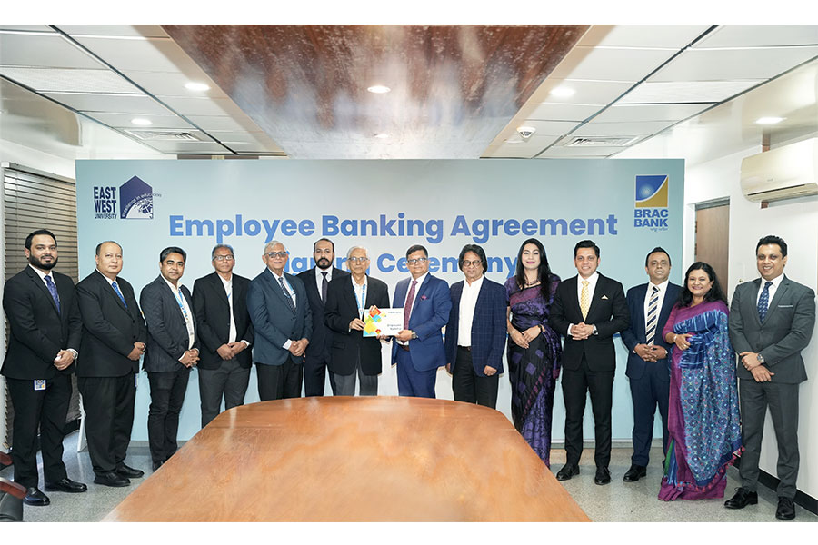 Through this collaboration, the employees of East West University will enjoy a seamless and rewarding banking experience, including salary accounts, multi-currency debit cards, credit cards, loan facilities, Deposit Pension Schemes (DPS), Fixed Deposits (FD), and a host of exclusive privileges under BRAC Bank’s Employee Banking proposition, according to a media release.