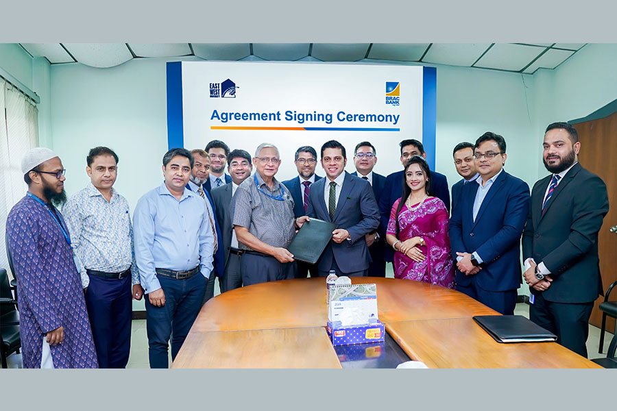 AKM Faisal Halim, Head of Transaction Banking; Ali Talukder, Head of Branch Digital Transformation at BRAC Bank; Touhidul Islam, FCA, Finance Controller at East West University; and senior officials from both organizations were present.