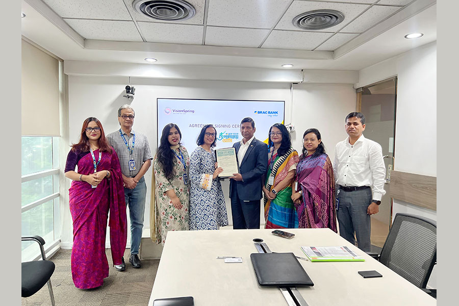 Sabbir Hossain, DMD and Chief Operating Officer of BRAC Bank, and Misha Mahjabeen, Country Director of VisionSpring, endorsed the agreement on behalf of their organisations.
