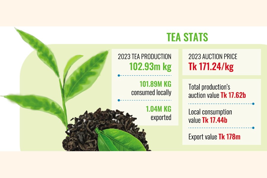The tea auction price was Tk 171.24 per kg in that season. Accordingly, the auction value of 102.93 million kg of tea was Tk 17.62 billion. The domestic consumption portion was valued at Tk 17.44 billion and the export portion at Tk 178 million.