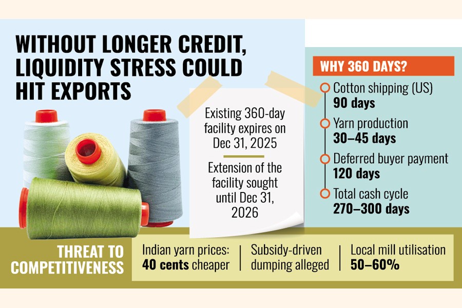 In a letter sent to Bangladesh Bank Governor Ahsan H Mansur on Tuesday, BTMA President Showkat Aziz Russell said the full cycle from cotton import to receipt of export proceeds typically takes between 270 and 300 days.