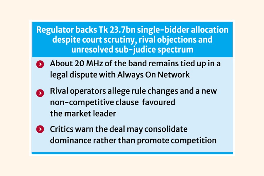 Bangladesh's telecom regulator has moved forward with a controversial allocation of 700 MHz spectrum to Grameenphone (GP), despite unresolved legal disputes, objections from rival operators and mounting accusations of regulatory bias that critics warn could further entrench market imbalance.
